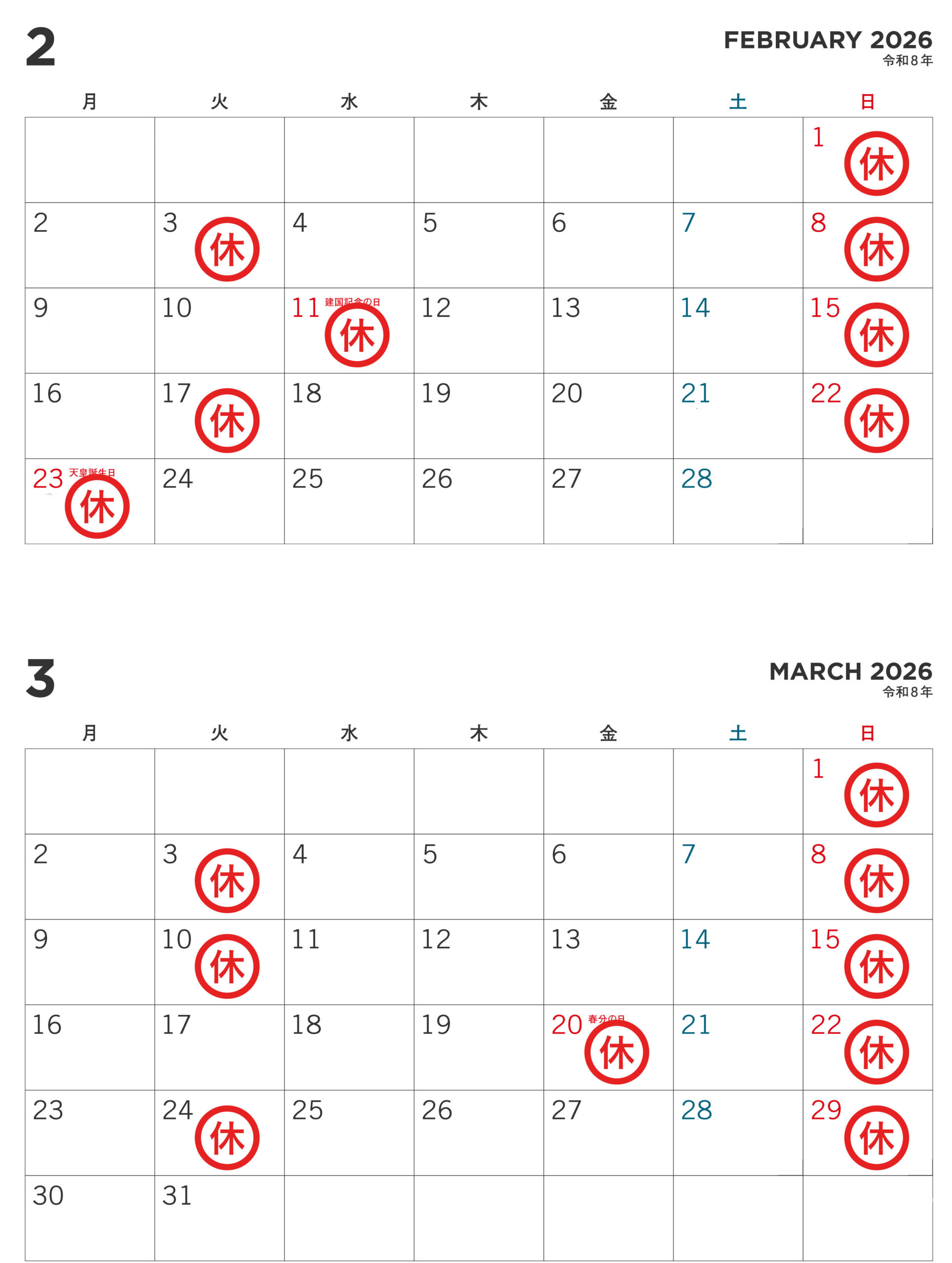 火曜・日曜・祝日(祝日のある週は火曜診療)